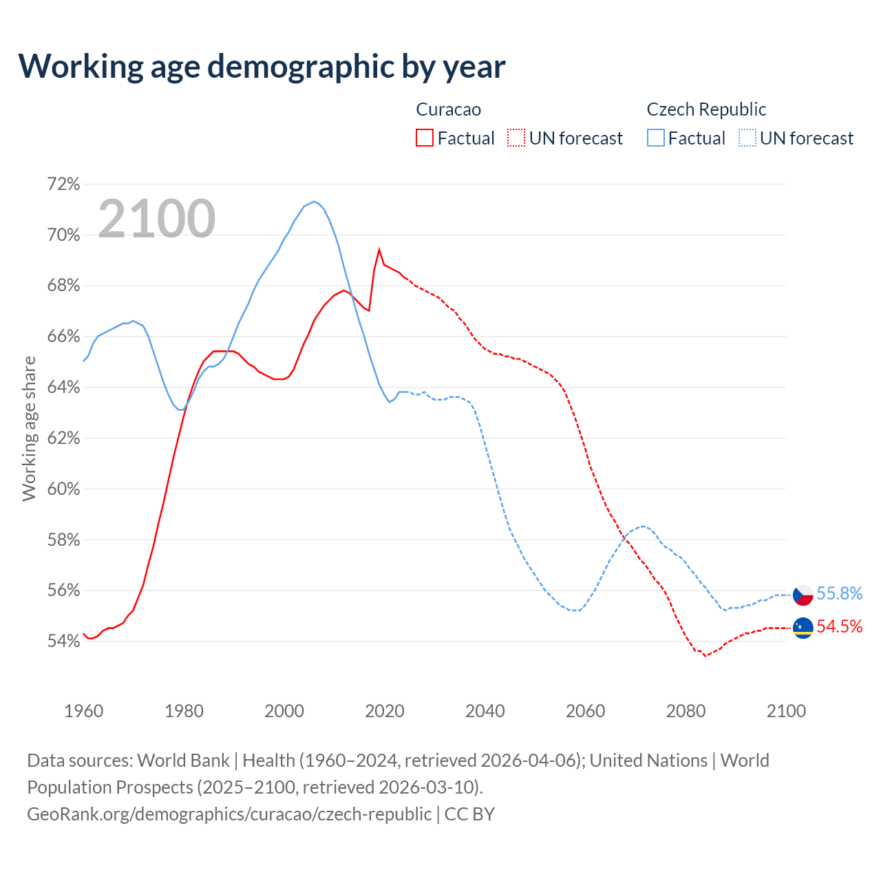 - Curacao has 107K working age adults (aged 15-64) vs 6.79M in the Czech Republic.