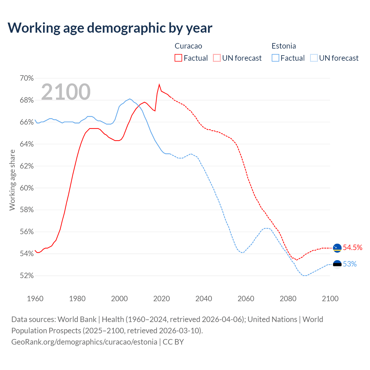 - Curacao has 107K working age adults (aged 15-64) vs 845K in Estonia.