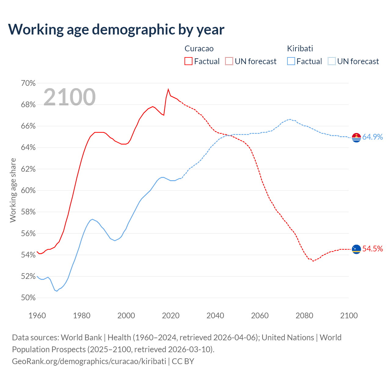 - Curacao has 107K working age adults (aged 15-64) vs 84.9K in Kiribati.