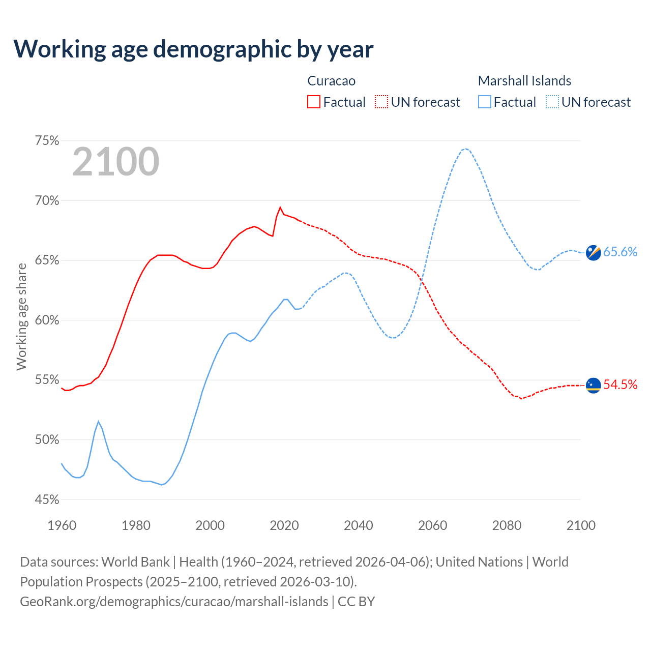 - Curacao has 107K working age adults (aged 15-64) vs 21.3K in the Marshall Islands.