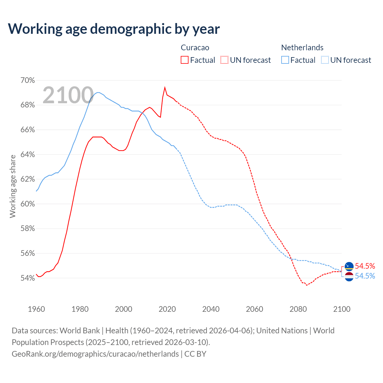 - Curacao has 107K working age adults (aged 15-64) vs 11.8M in the Netherlands.
