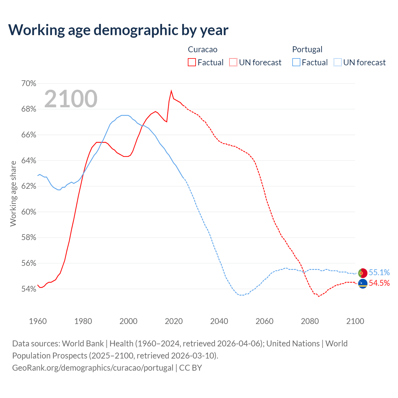- Curacao has 107K working age adults (aged 15-64) vs 6.68M in Portugal.