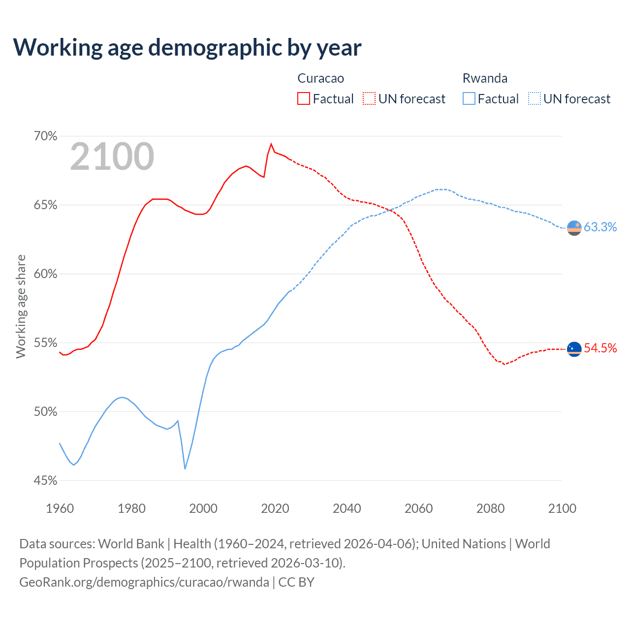 - Curacao has 107K working age adults (aged 15-64) vs 8.79M in Rwanda.