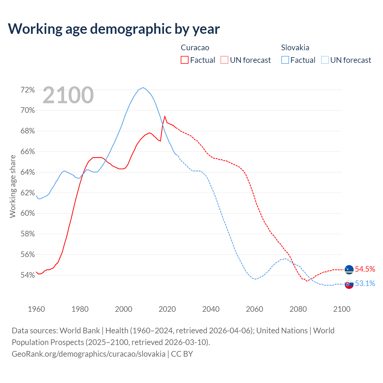 - Curacao has 107K working age adults (aged 15-64) vs 3.52M in Slovakia.