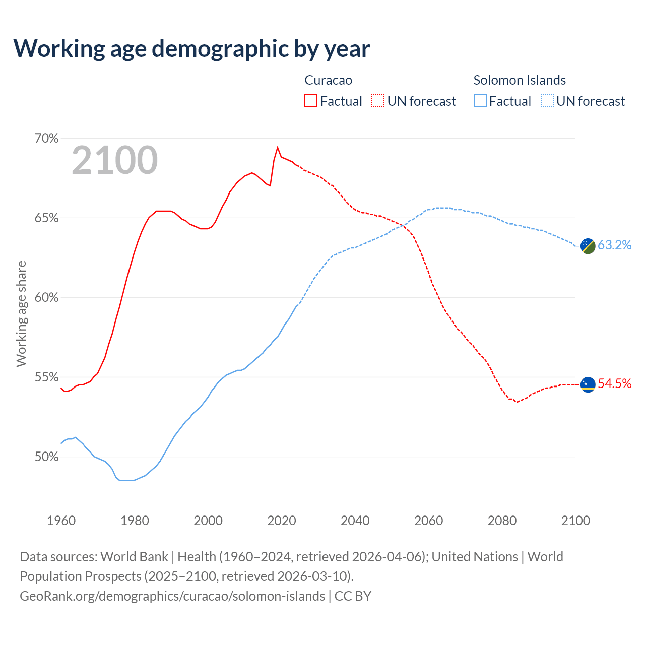 - Curacao has 107K working age adults (aged 15-64) vs 513K in the Solomon Islands.