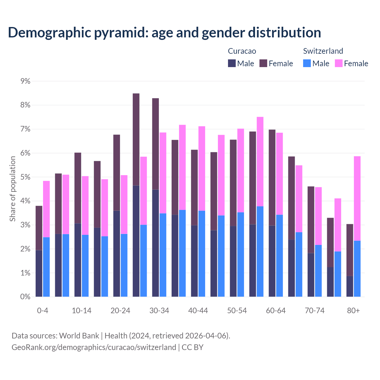 Demographics of Curacao compared to Switzerland: