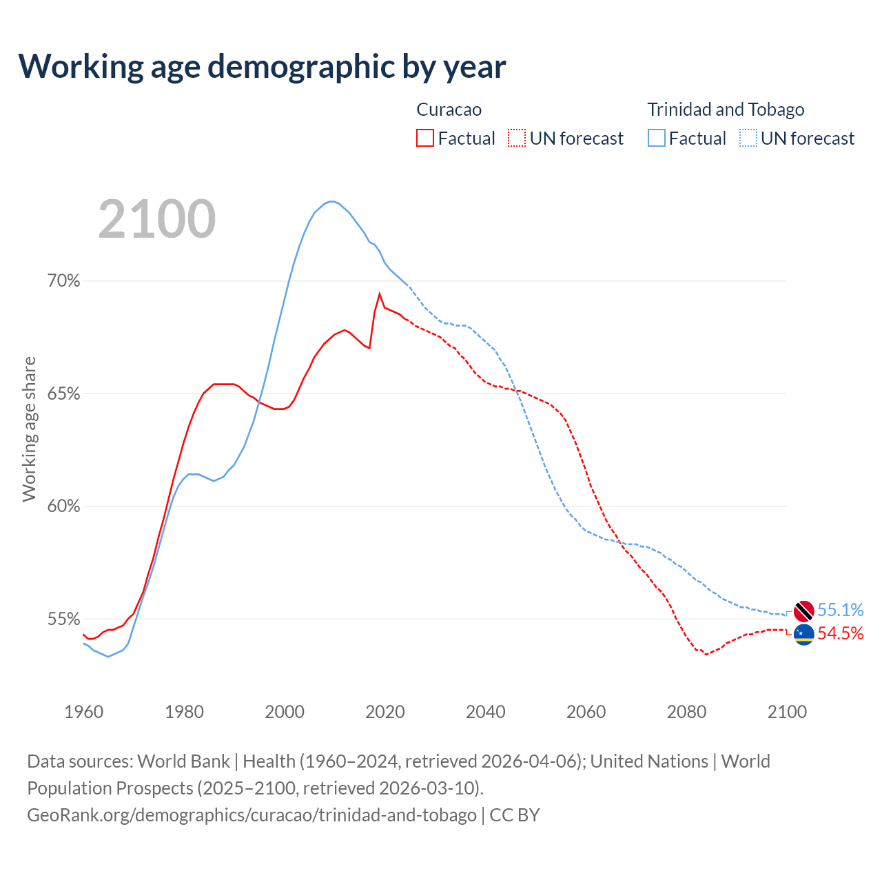 - Curacao has 107K working age adults (aged 15-64) vs 960K in Trinidad and Tobago.