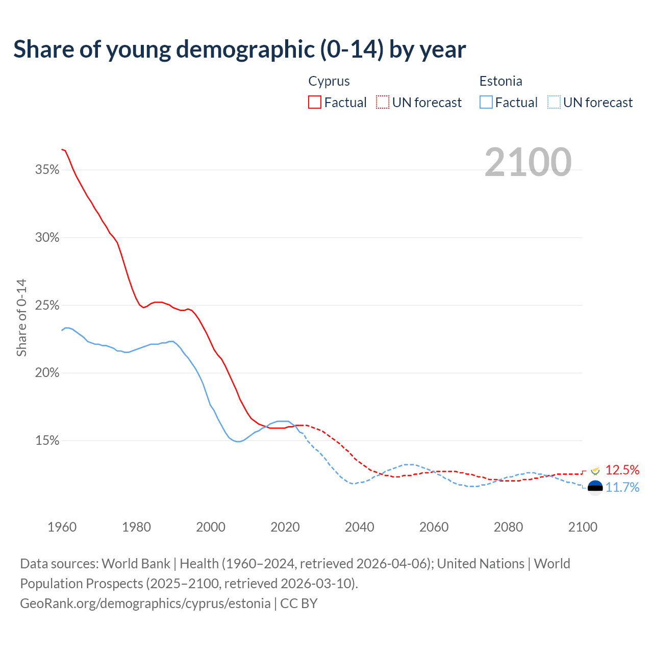 - The share of young demographic (0-15 years old) in Cyprus is 16.1% vs 15.6% in Estonia.