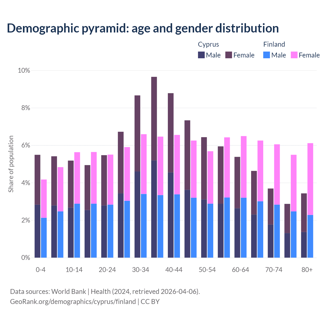 Demographics of Cyprus compared to Finland: