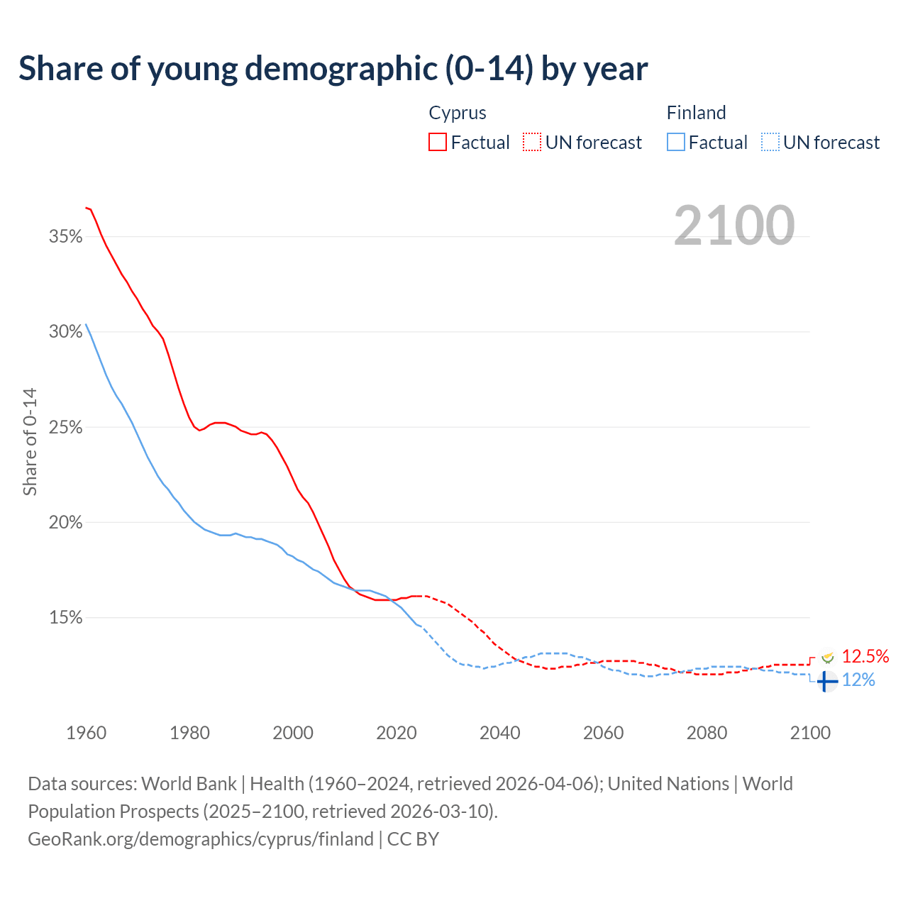 - The share of young demographic (0-15 years old) in Cyprus is 16.1% vs 14.6% in Finland.
