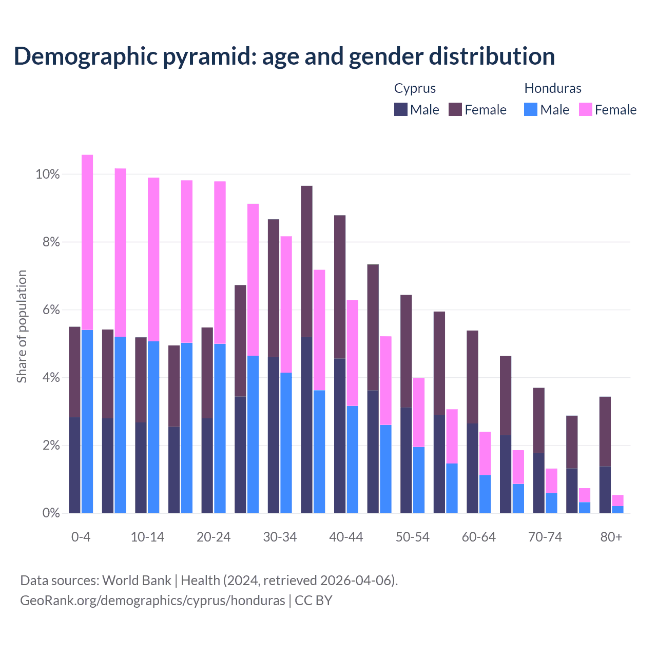 Demographics of Cyprus compared to Honduras:
