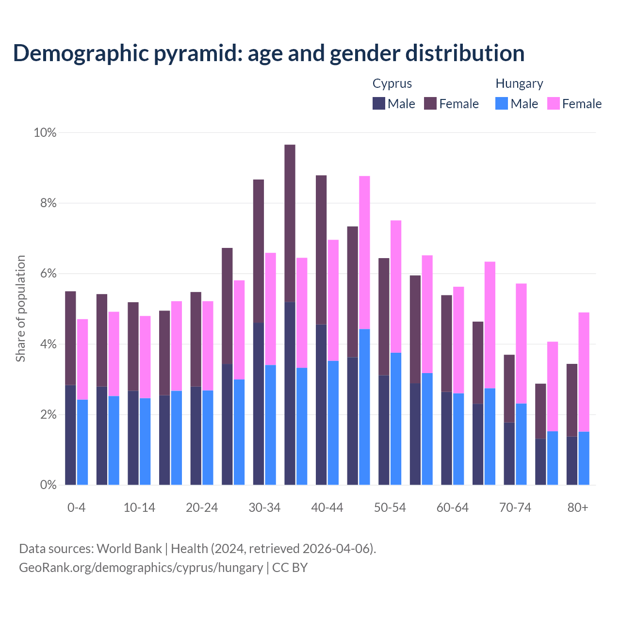 Demographics of Cyprus compared to Hungary: