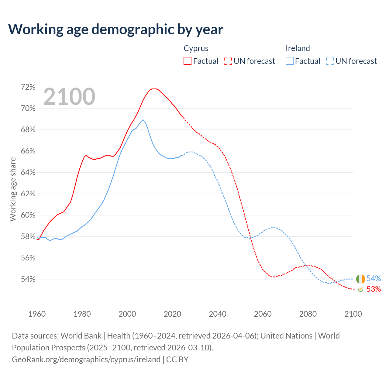 - Cyprus has 961K working age adults (aged 15-64) vs 3.62M in Ireland.