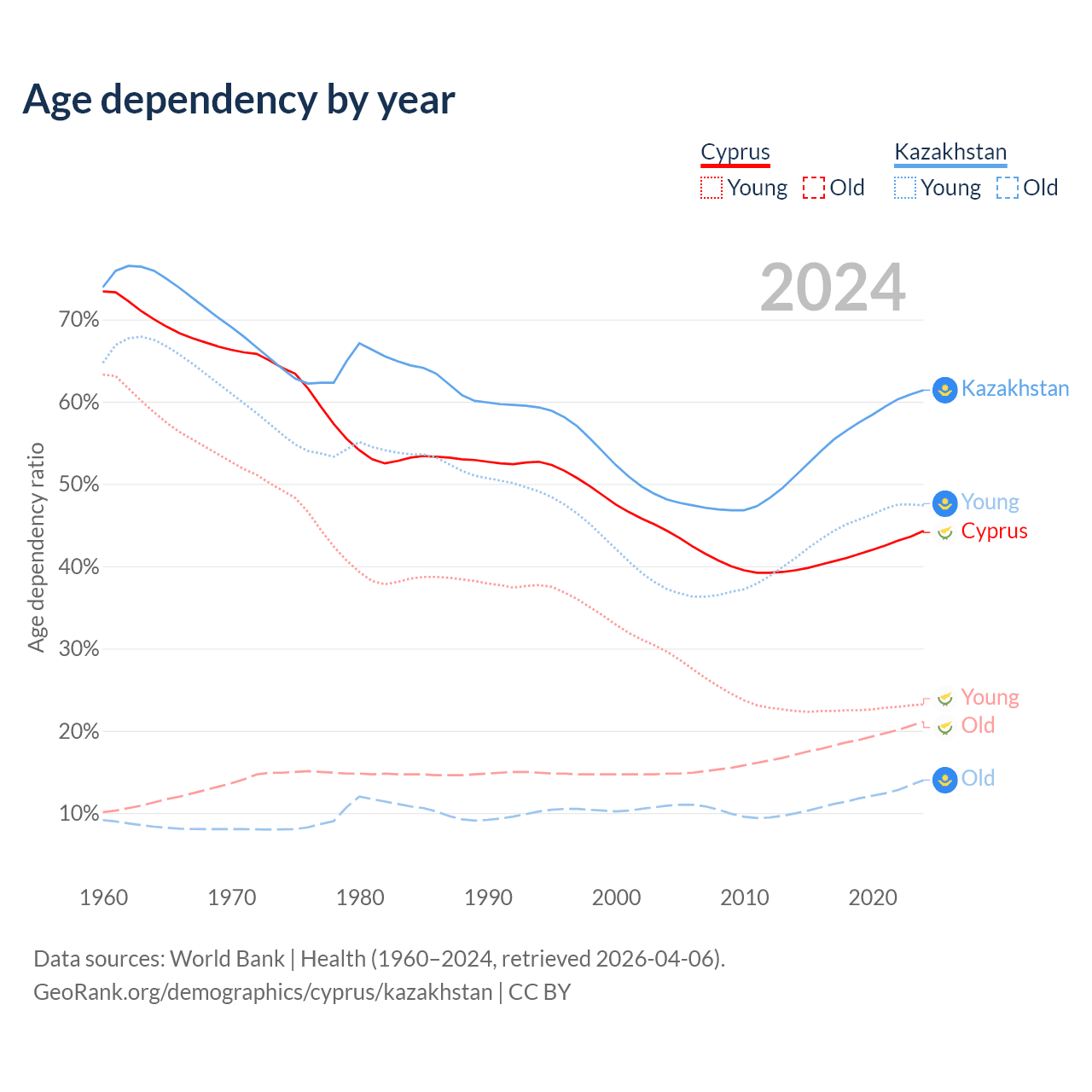 - World Bank | Health (1960–2024, retrieved 2026-04-06)