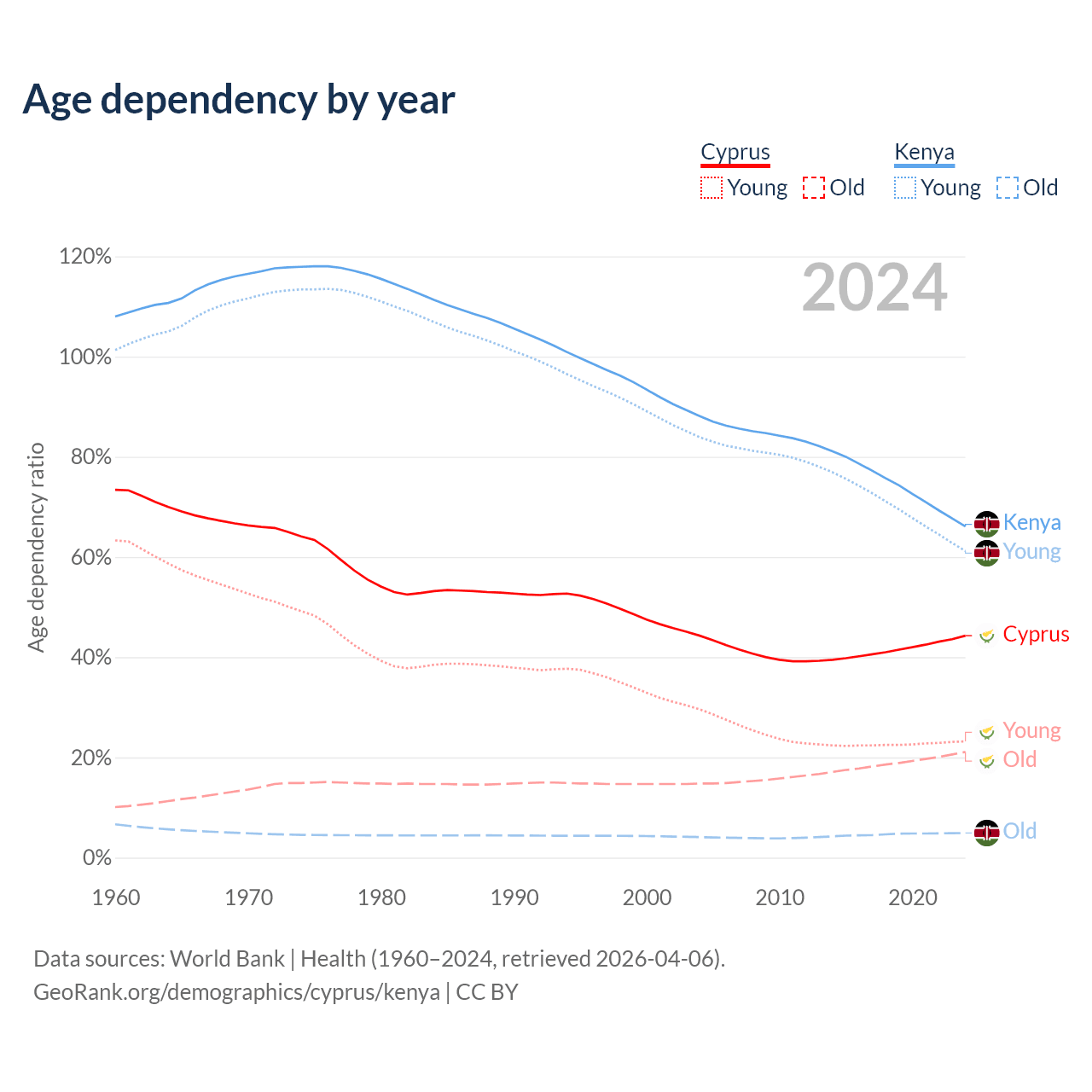 The share of older people aged 65 and over is 14.6% in Cyprus and 2.97% in Kenya. Life expectancy in Cyprus compared to Kenya .