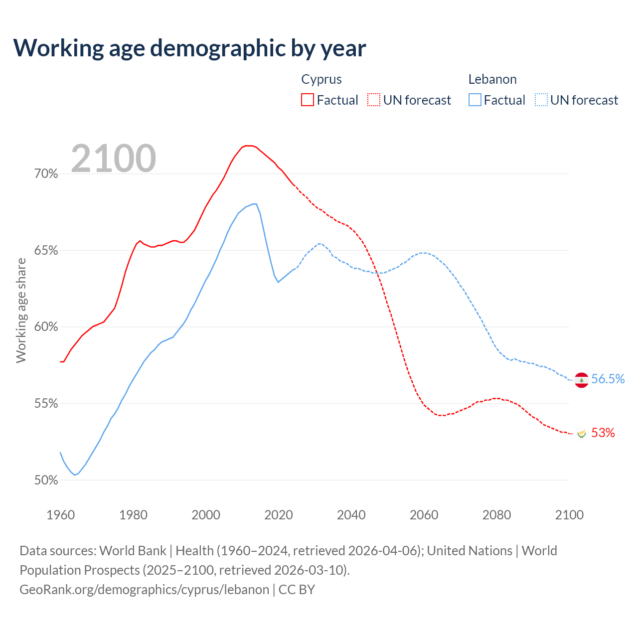 - Cyprus has 961K working age adults (aged 15-64) vs 3.76M in Lebanon.