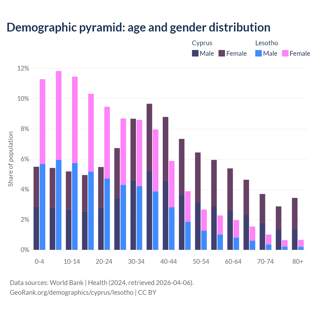 Demographics of Cyprus compared to Lesotho: