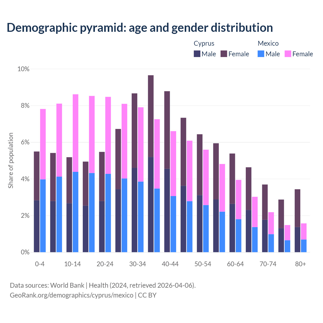 Demographics of Cyprus compared to Mexico: