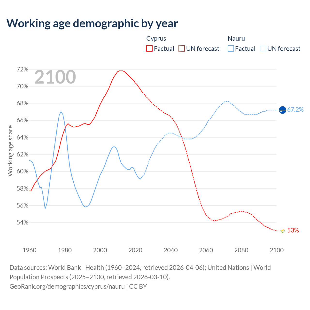 - Cyprus has 961K working age adults (aged 15-64) vs 7.2K in Nauru.
