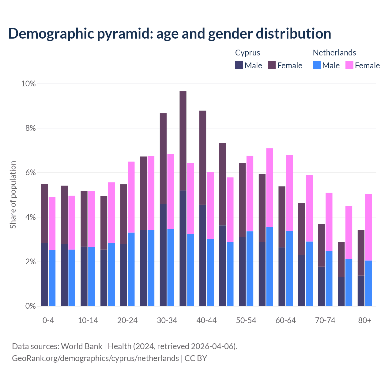 Demographics of Cyprus compared to the Netherlands: