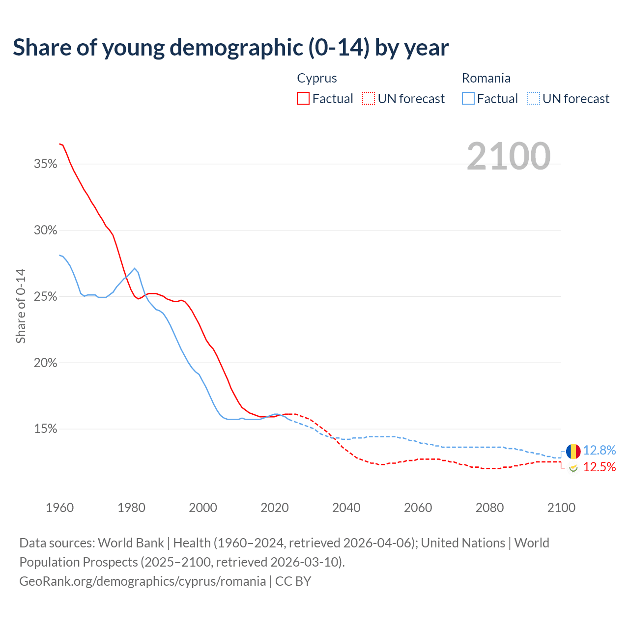 - The share of young demographic (0-15 years old) in Cyprus is 16.1% vs 15.7% in Romania.