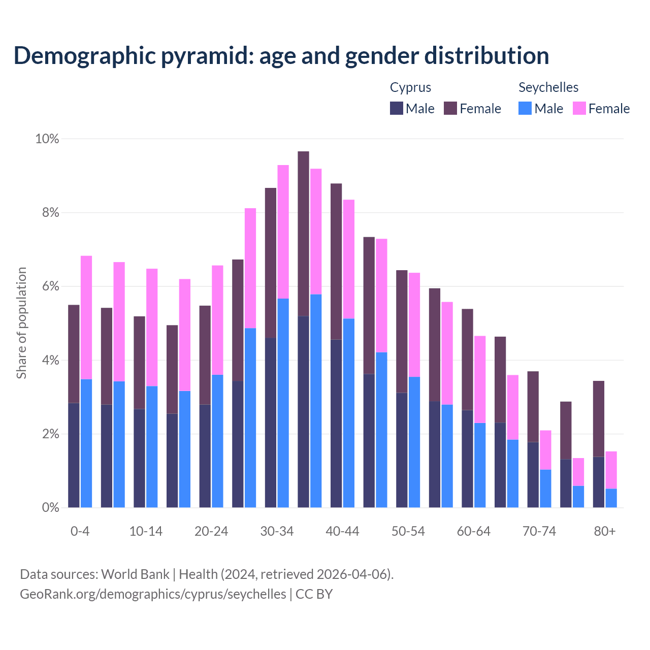 Demographics of Cyprus compared to the Seychelles: