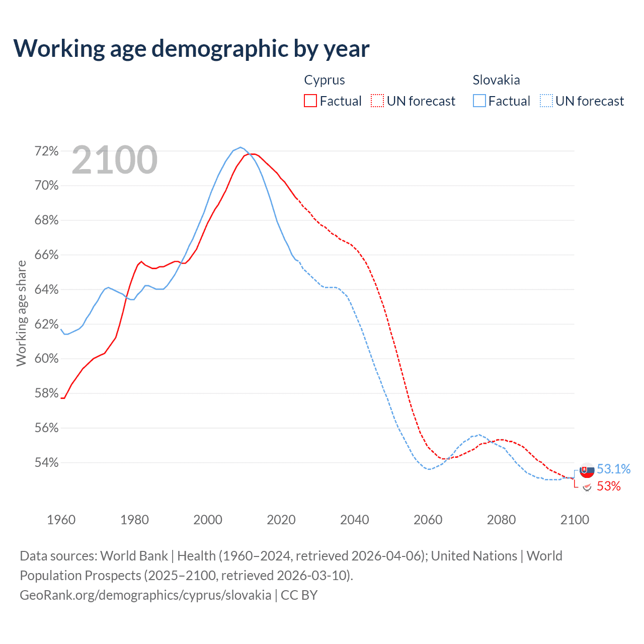 - Cyprus has 961K working age adults (aged 15-64) vs 3.52M in Slovakia.