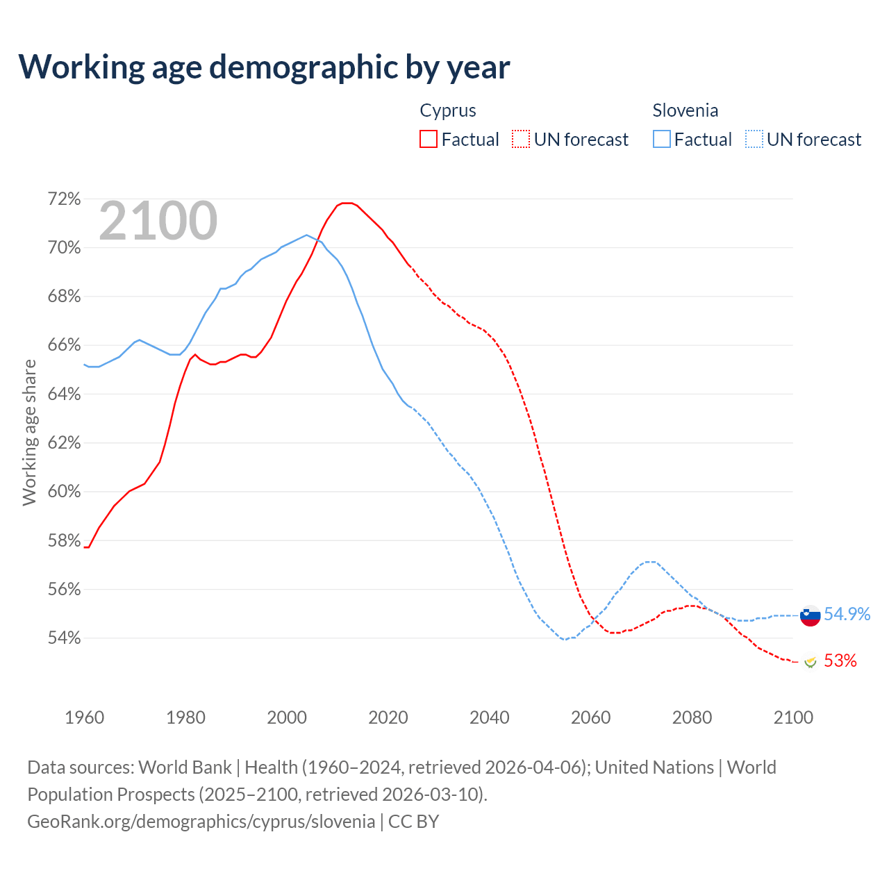 - Cyprus has 961K working age adults (aged 15-64) vs 1.35M in Slovenia.
