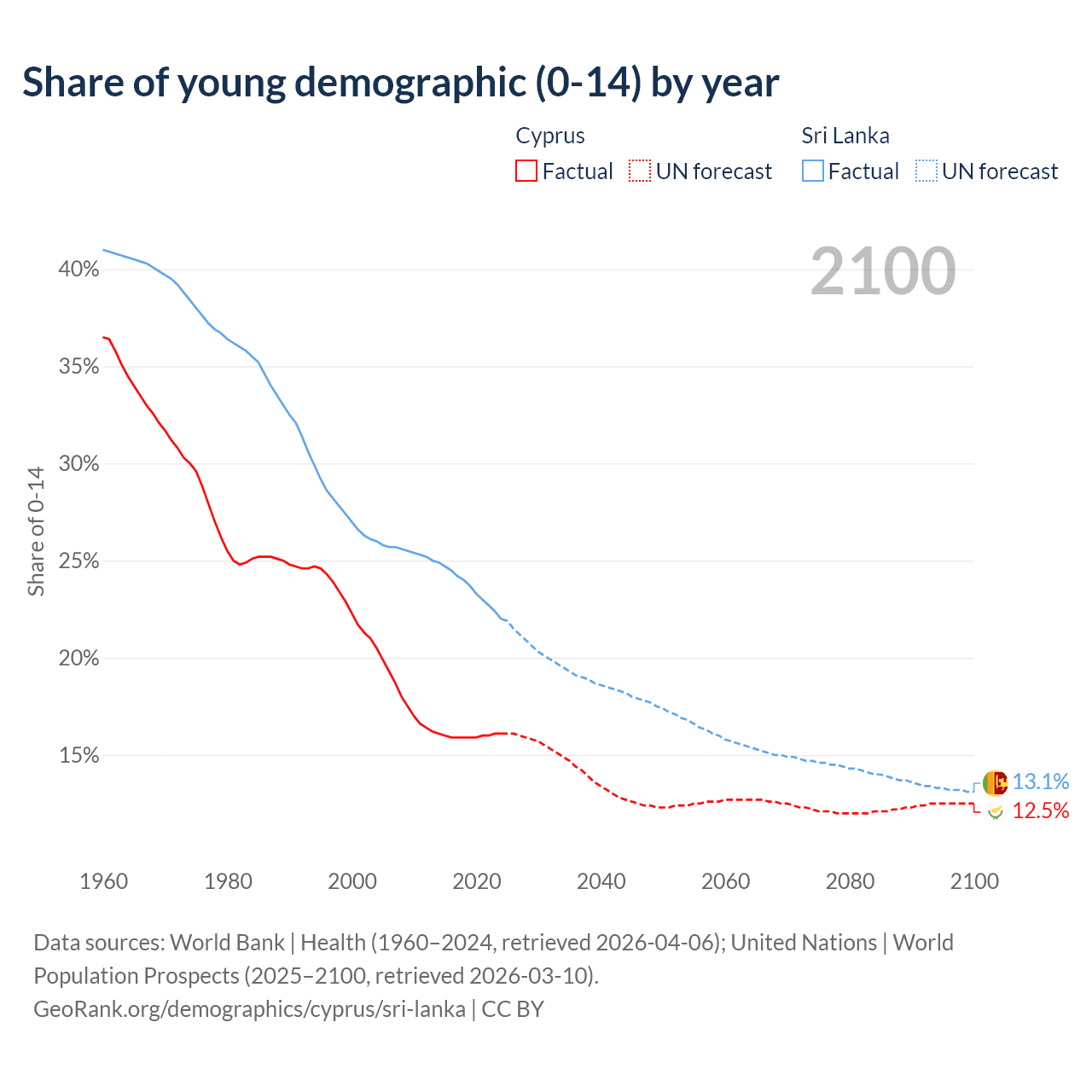 - As of 2026, the population of Cyprus is 1.39M vs 22.2M in Sri Lanka - 16 times difference.