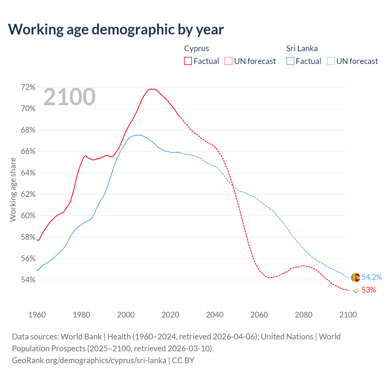 - Cyprus has 961K working age adults (aged 15-64) vs 14.6M in Sri Lanka.
