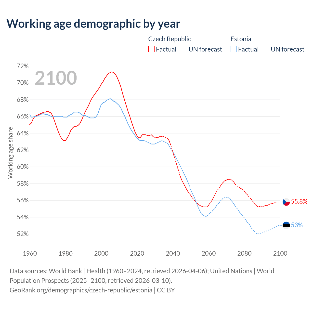 - The Czech Republic has 6.79M working age adults (aged 15-64) vs 845K in Estonia.