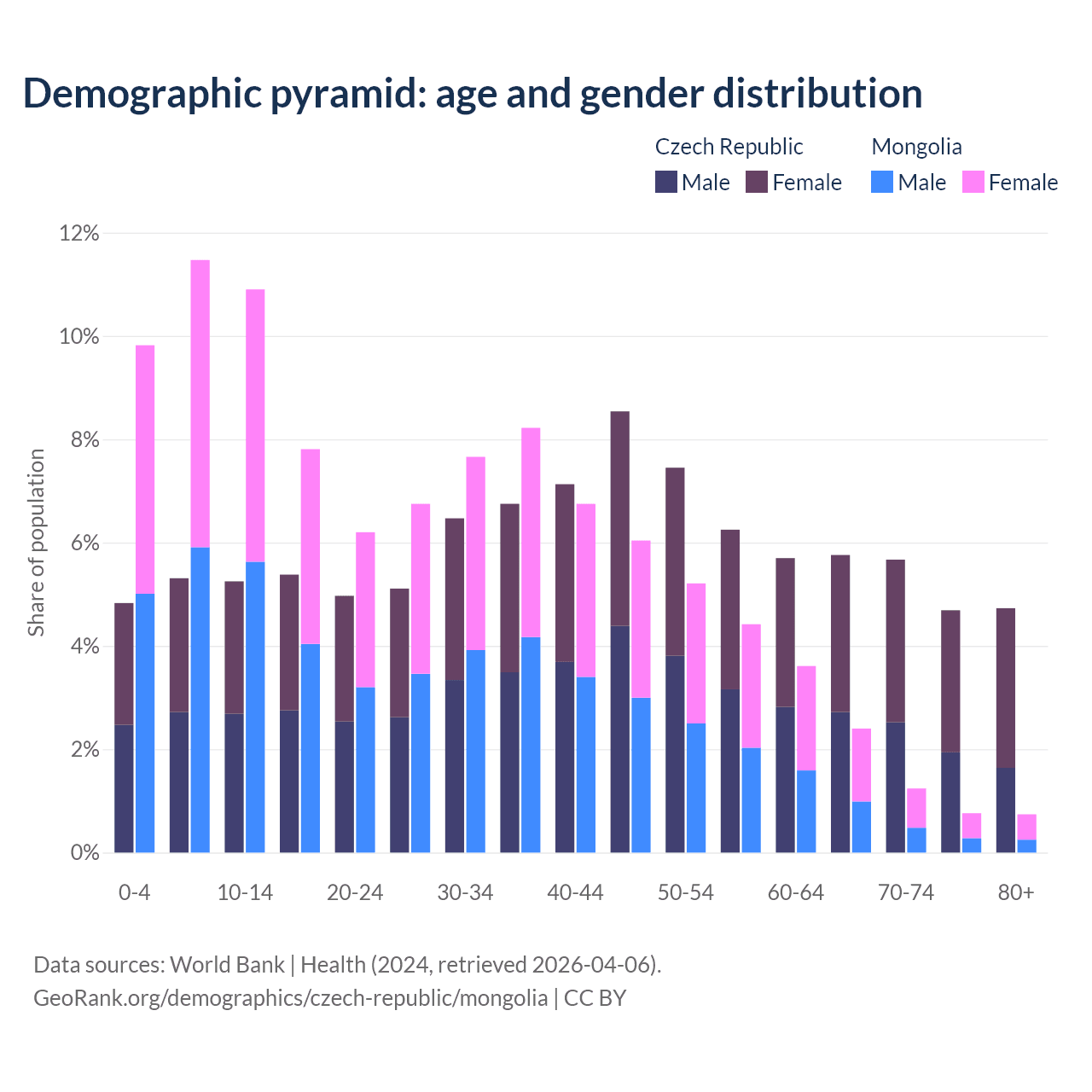 Demographics of the Czech Republic compared to Mongolia: