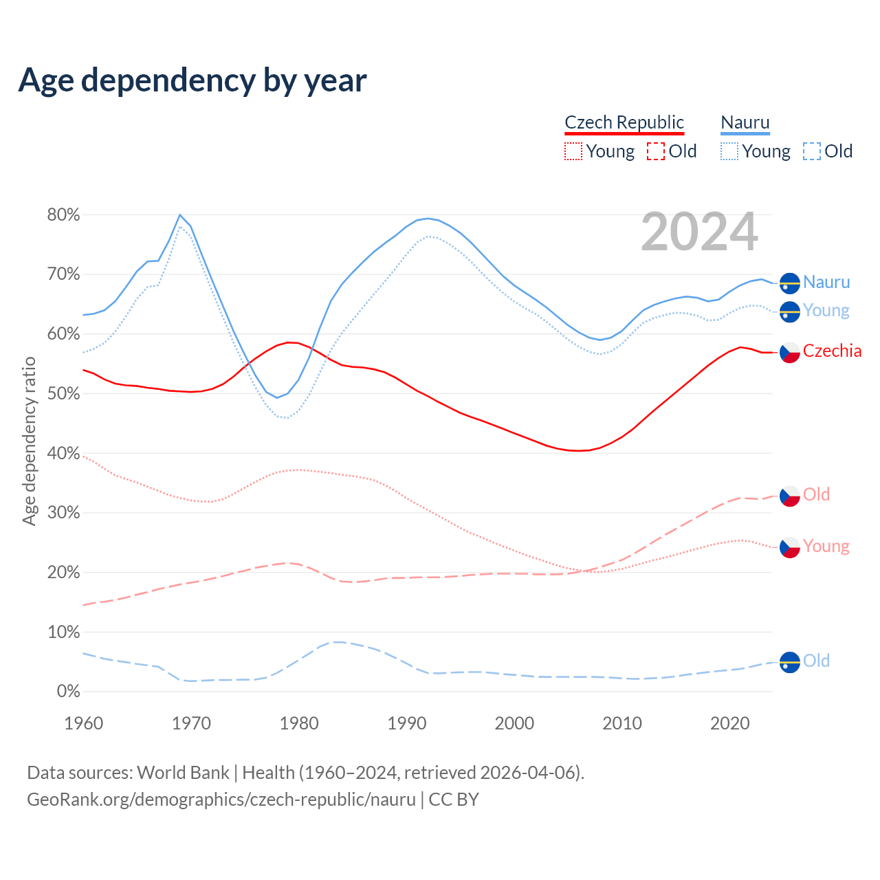 - The Czech Republic is ranked 21/196 by median age (oldest to youngest) vs 155/196 for Nauru.