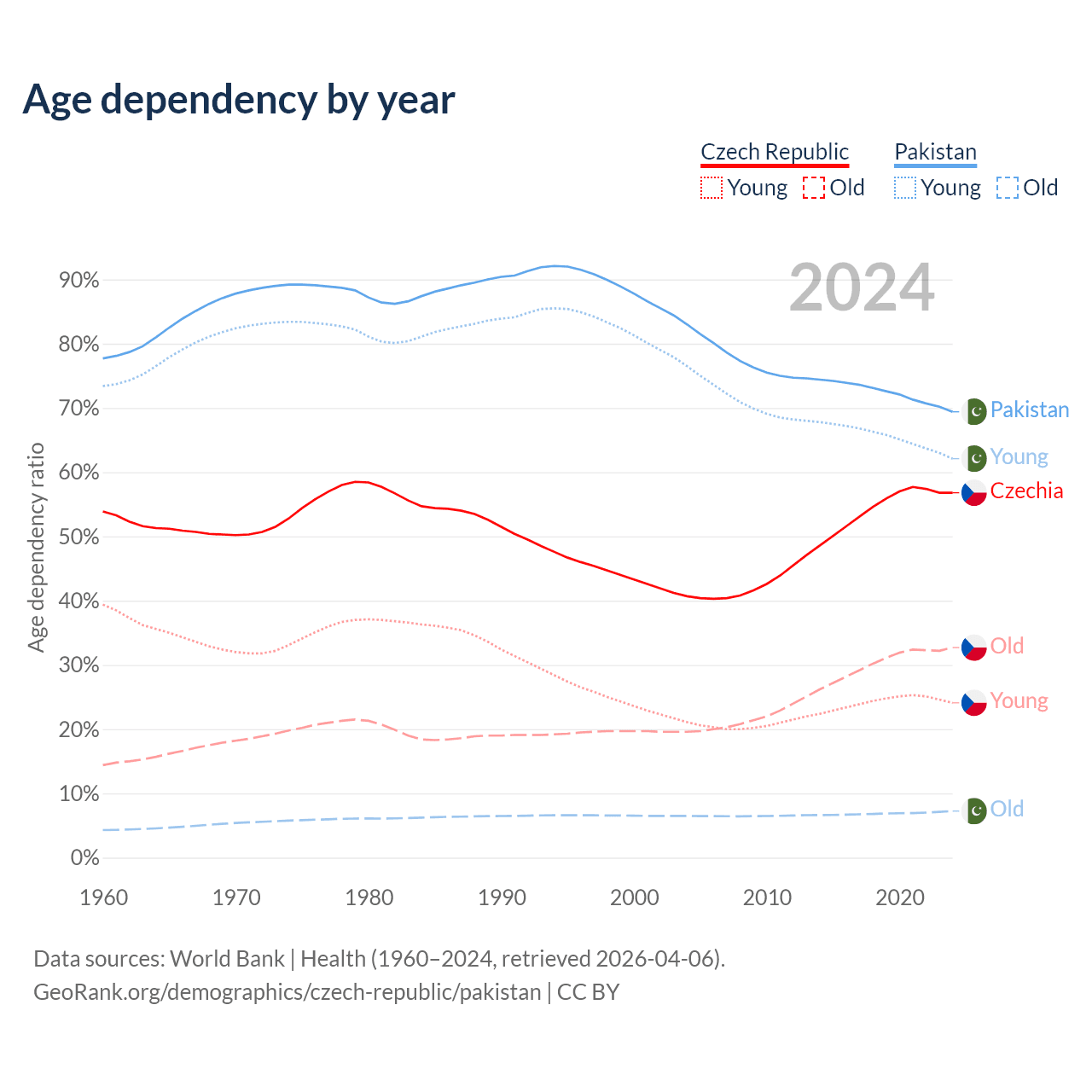 - The Czech Republic is ranked 21/196 by median age (oldest to youngest) vs 154/196 for Pakistan.
