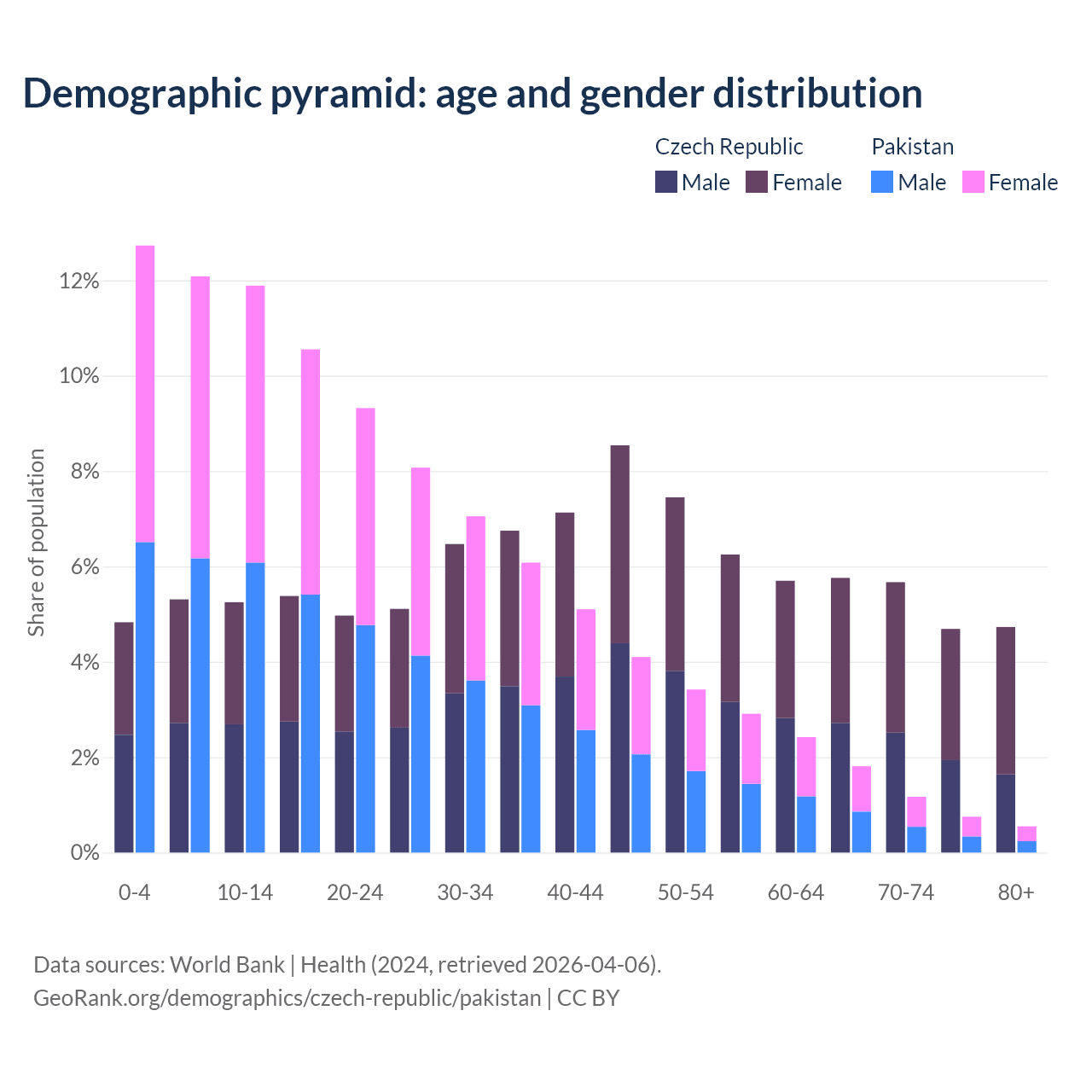 Demographics of the Czech Republic compared to Pakistan: