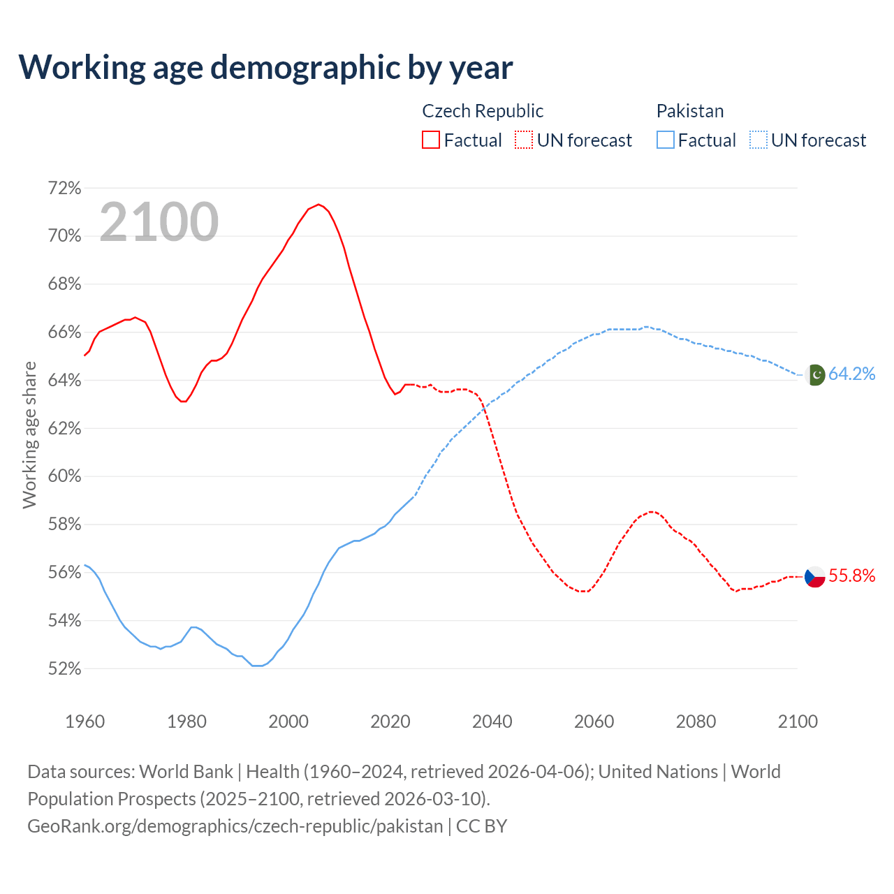 - The Czech Republic has 6.79M working age adults (aged 15-64) vs 154M in Pakistan.