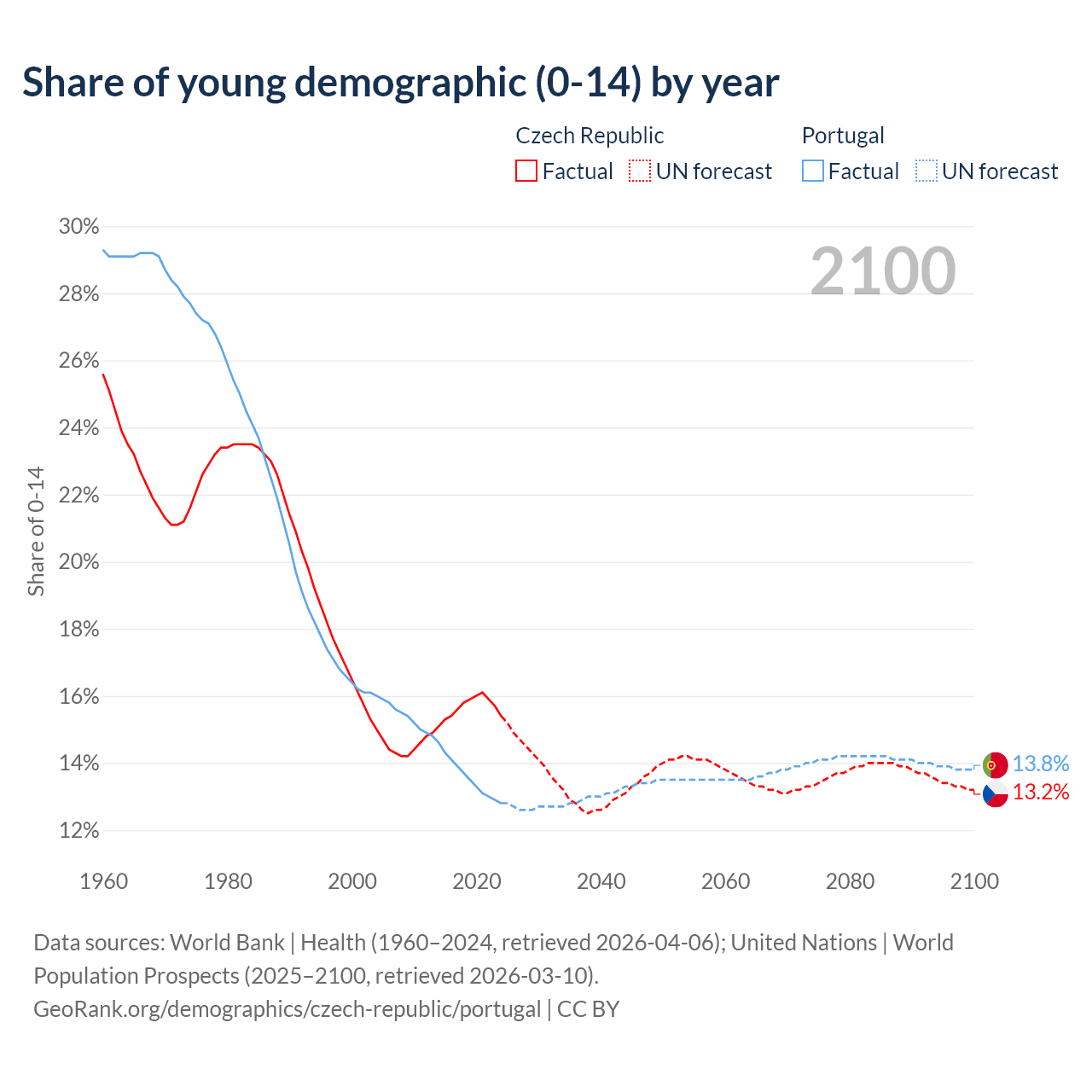 - As of 2026, the population of the Czech Republic is 10.6M vs 10.7M in Portugal.