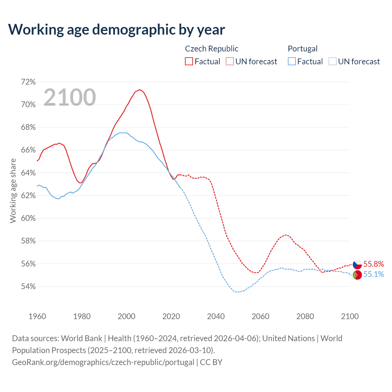 - The Czech Republic has 6.79M working age adults (aged 15-64) vs 6.68M in Portugal.