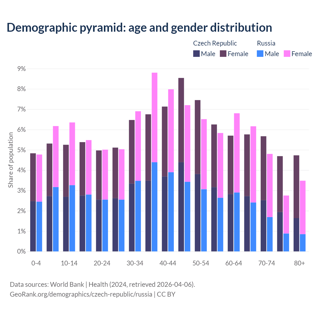 Demographics of the Czech Republic compared to Russia: