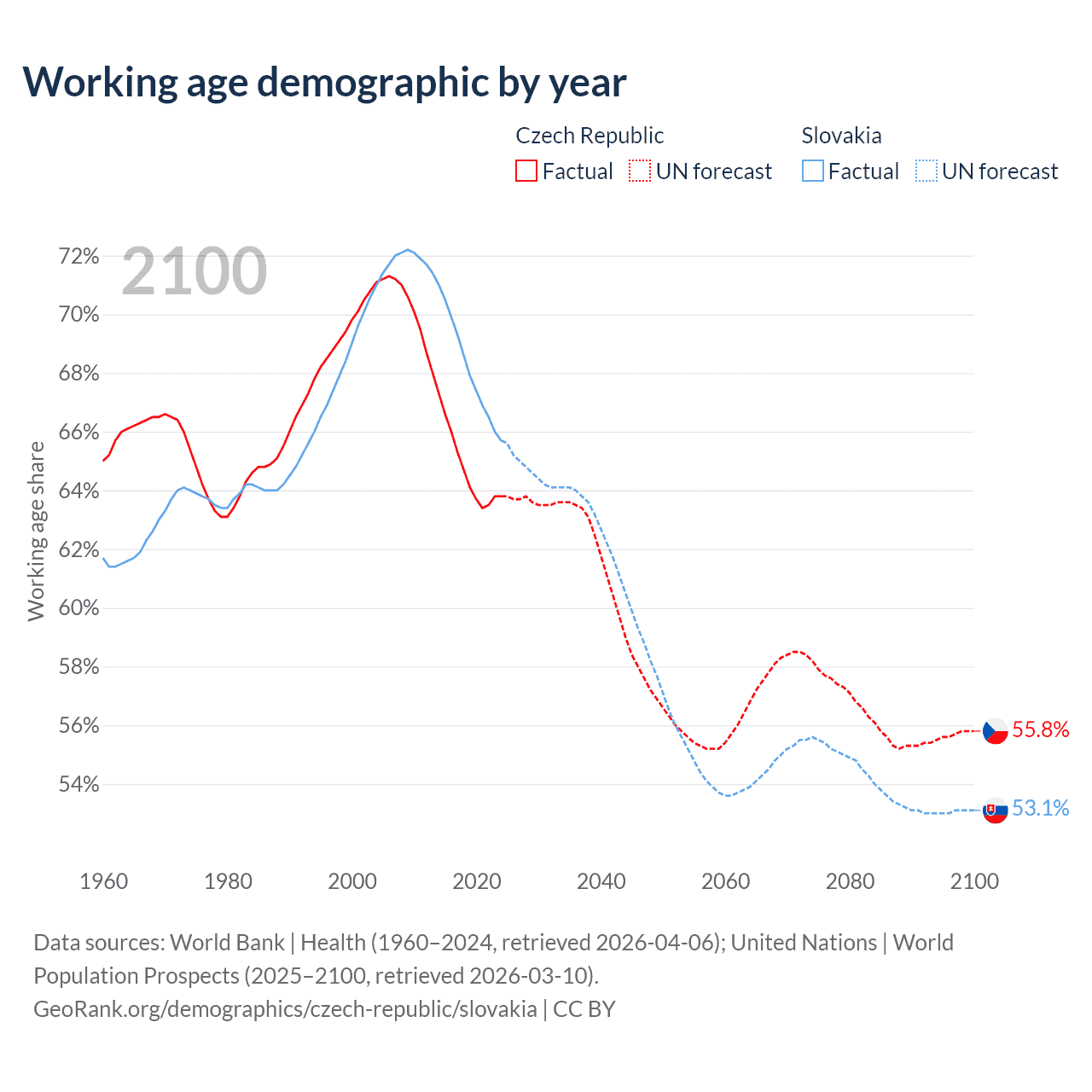 - The Czech Republic has 6.79M working age adults (aged 15-64) vs 3.52M in Slovakia.