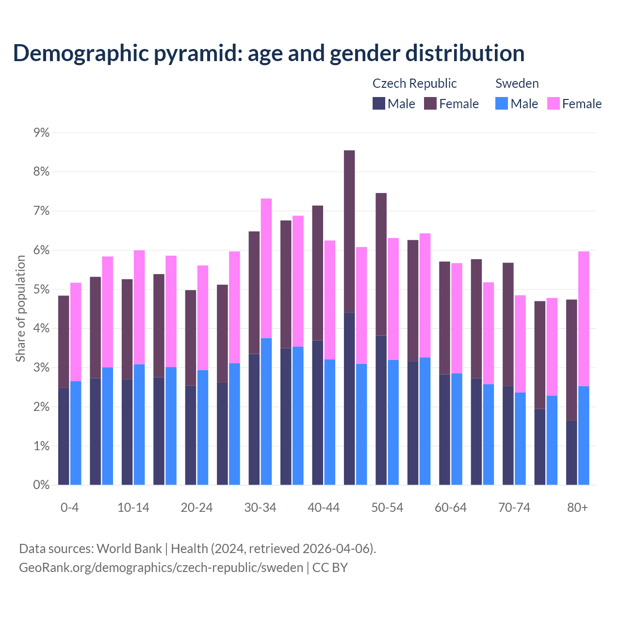 Demographics of the Czech Republic compared to Sweden: