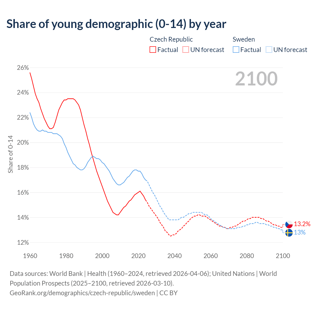 - As of 2026, the population of the Czech Republic is 10.6M vs 10.7M in Sweden.