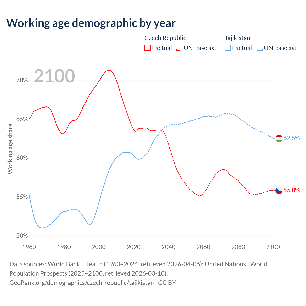 - The Czech Republic has 6.79M working age adults (aged 15-64) vs 6.61M in Tajikistan.