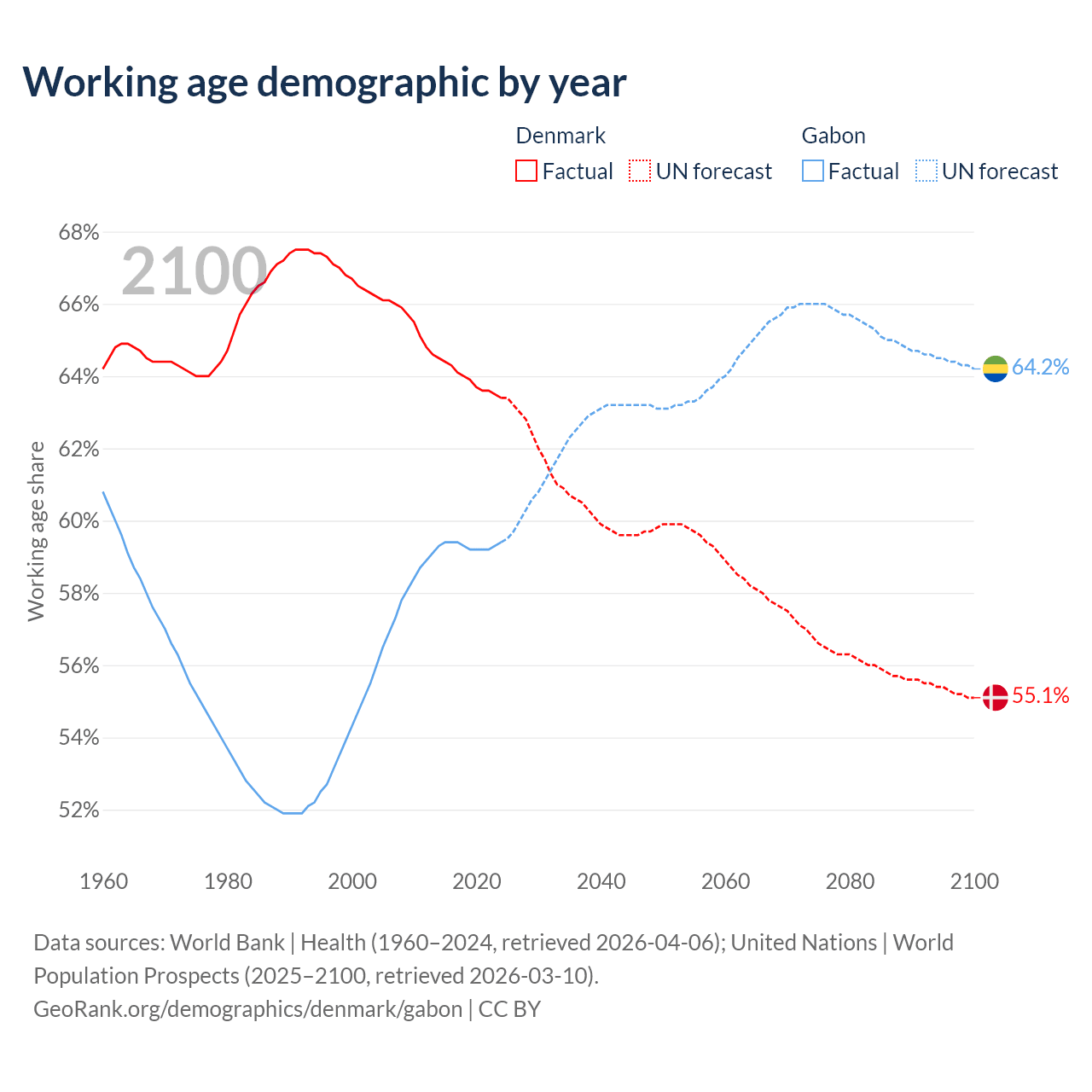 - Denmark has 3.83M working age adults (aged 15-64) vs 1.58M in Gabon.