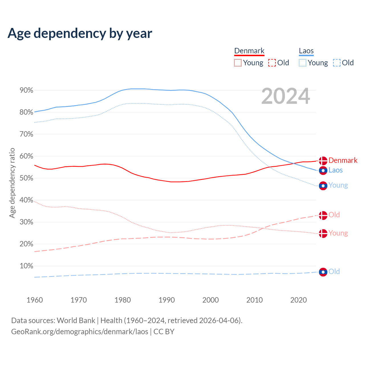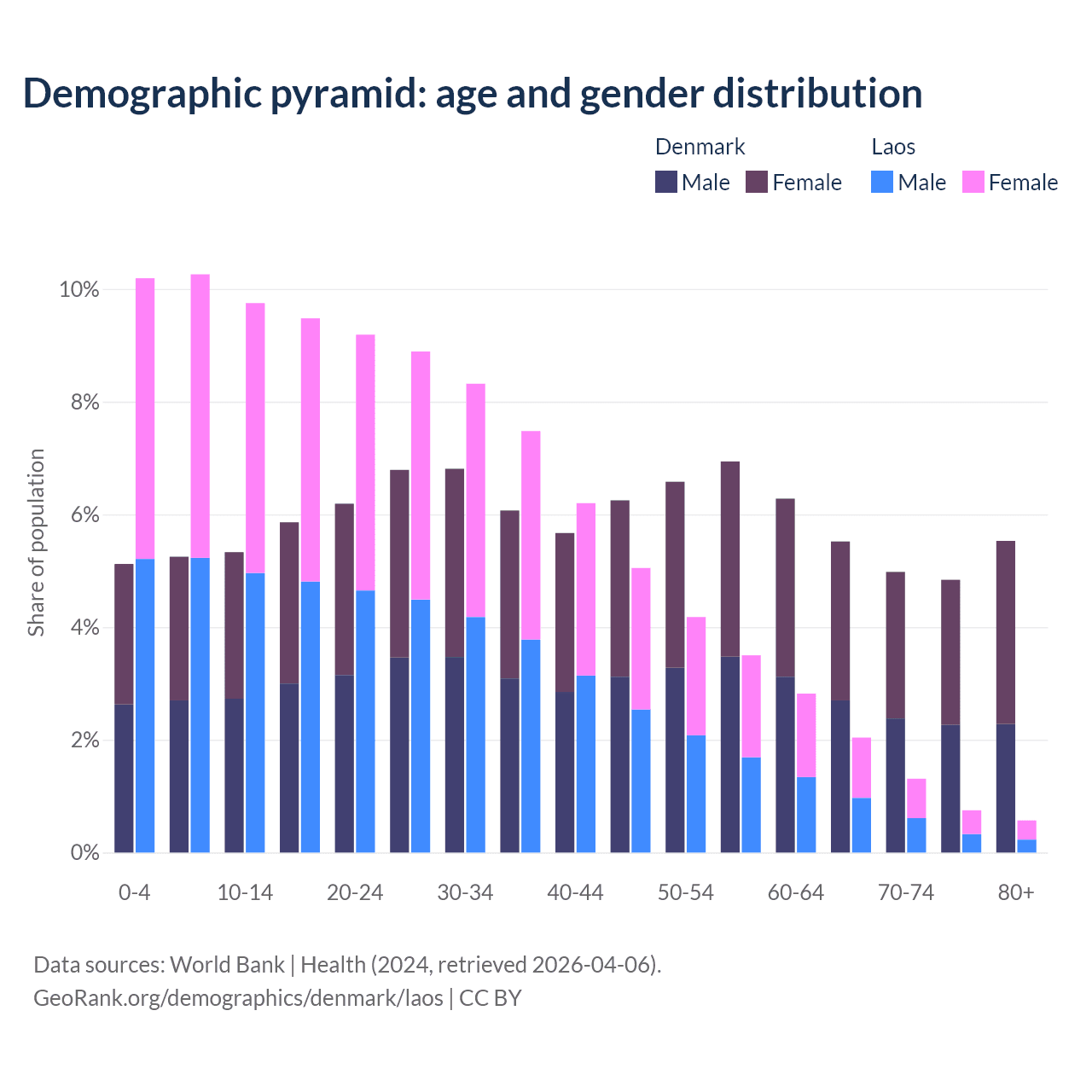 Demographics of Denmark compared to Laos: