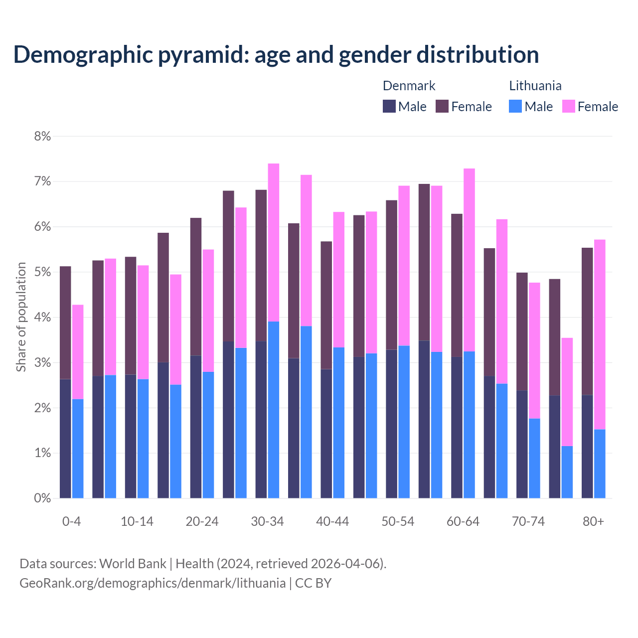 Demographics of Denmark compared to Lithuania: