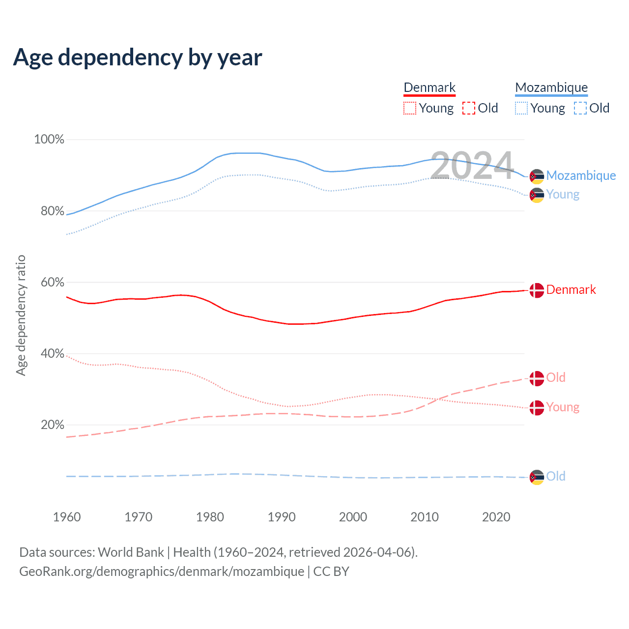 Demographics of Denmark compared to Mozambique: