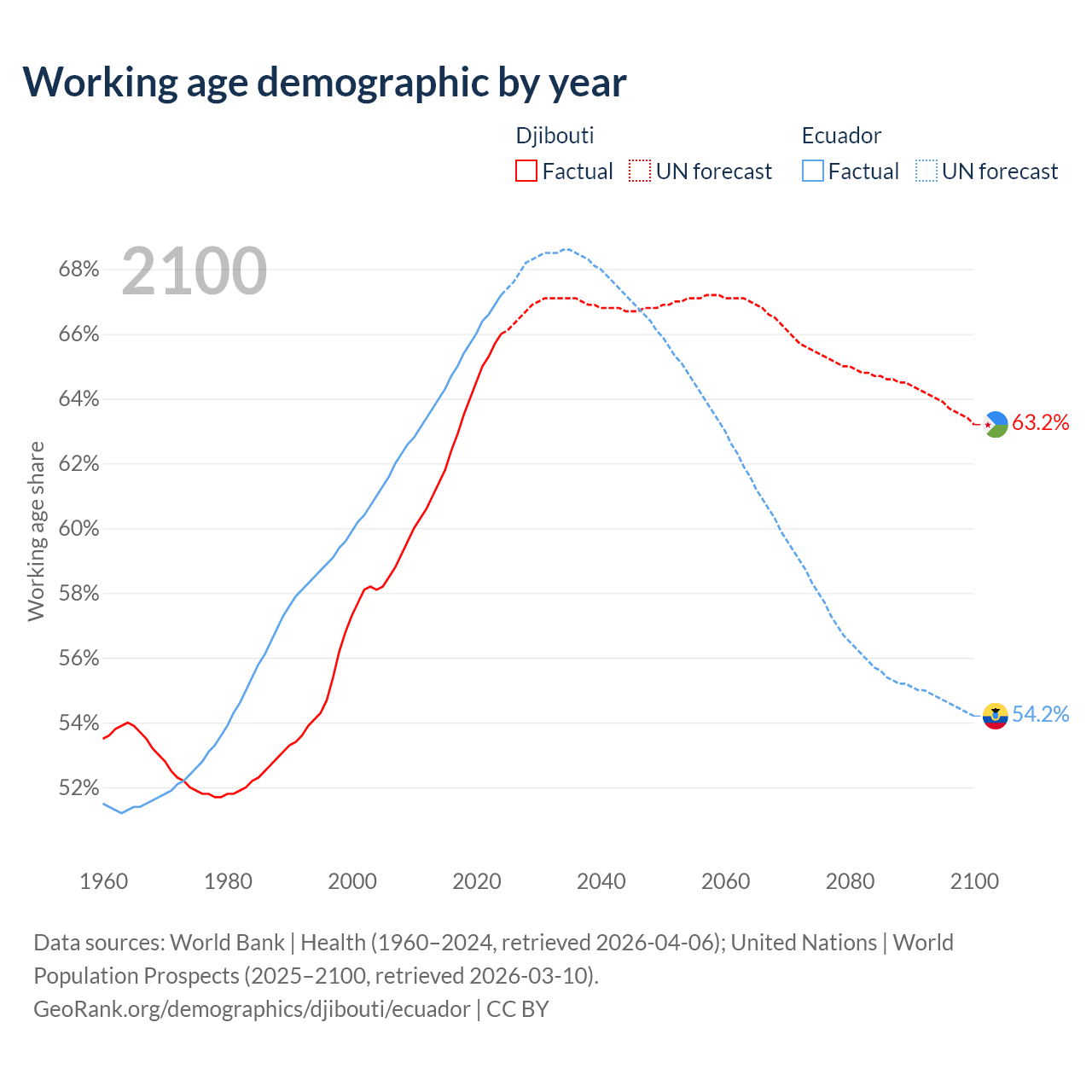 - Djibouti has 794K working age adults (aged 15-64) vs 12.4M in Ecuador.