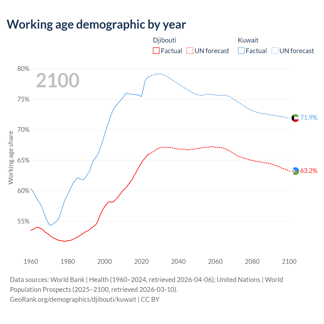 - Djibouti has 794K working age adults (aged 15-64) vs 4.01M in Kuwait.