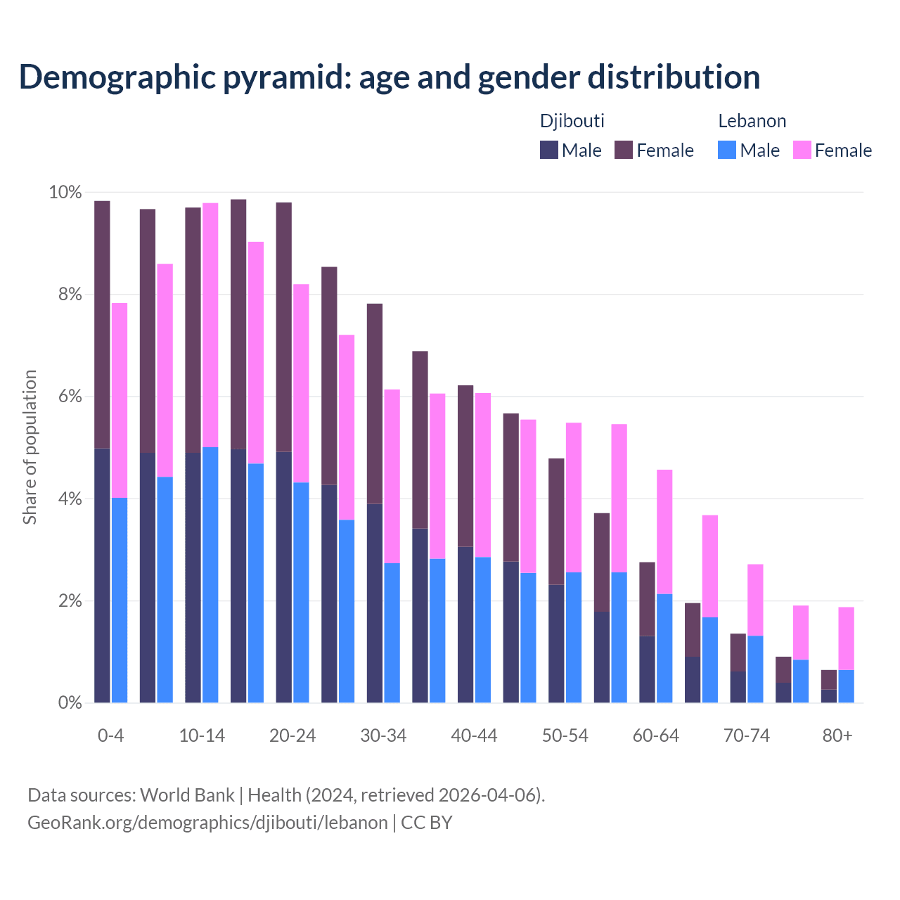 Demographics of Djibouti compared to Lebanon: